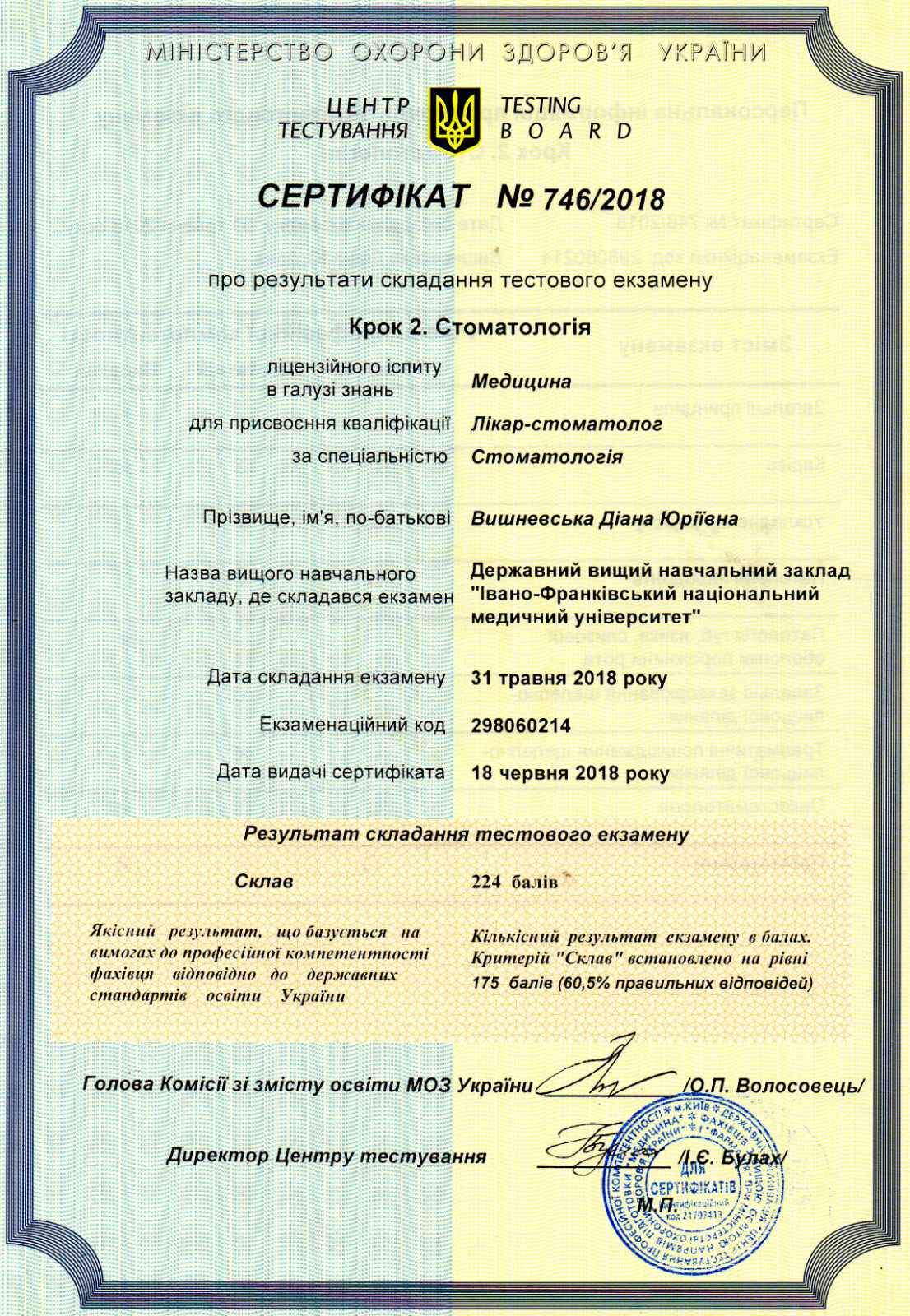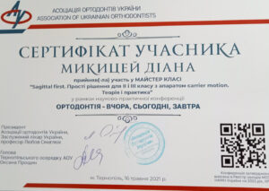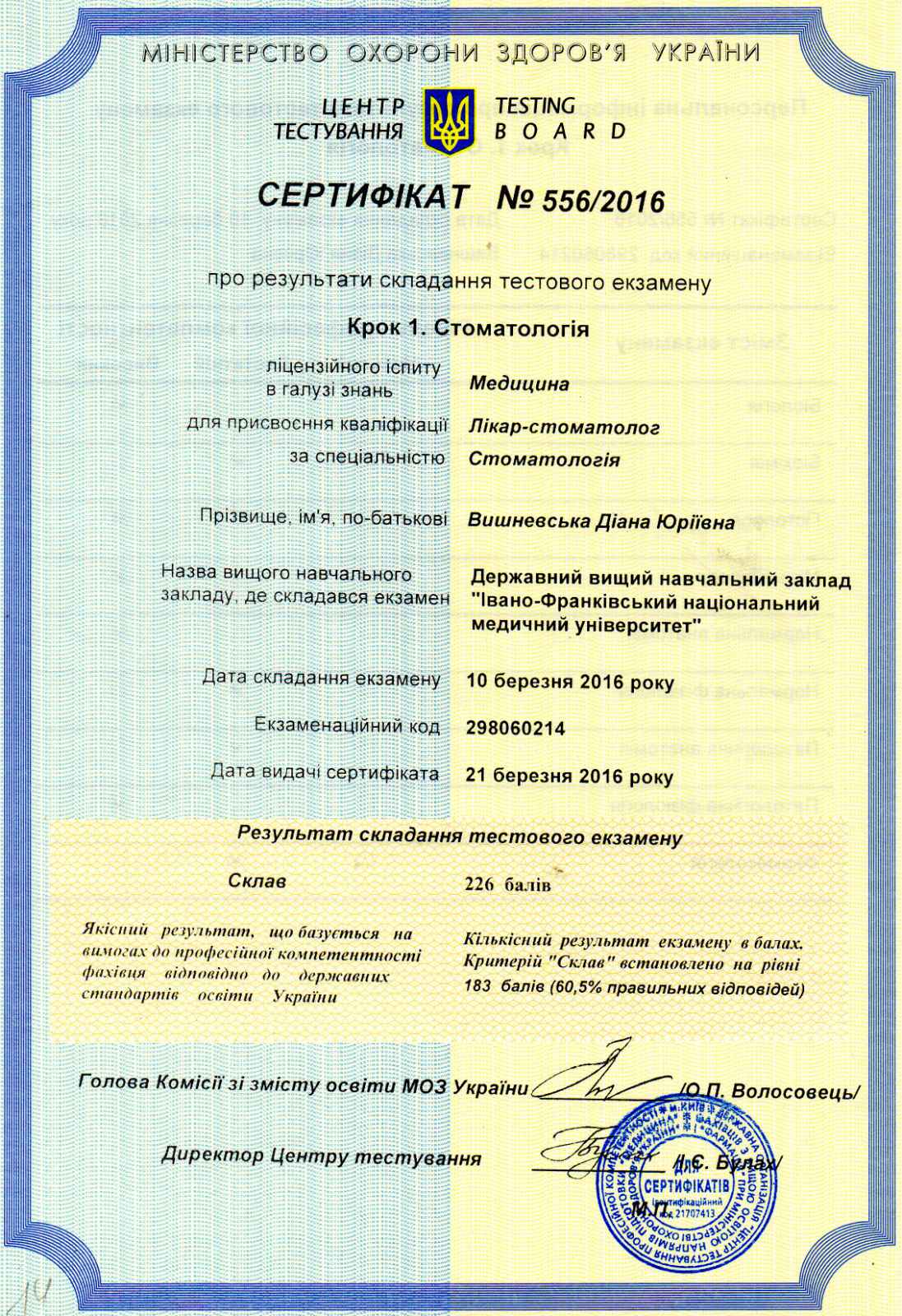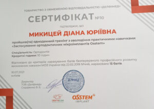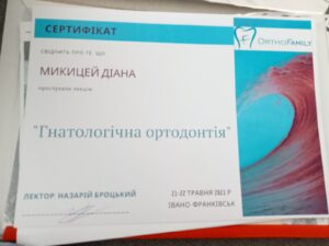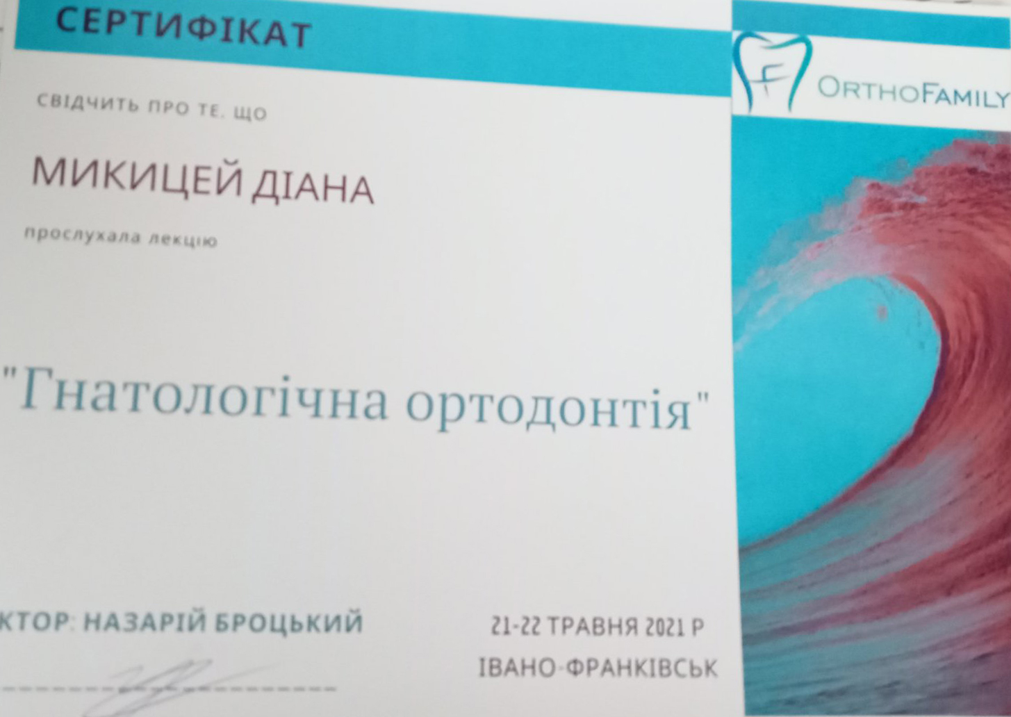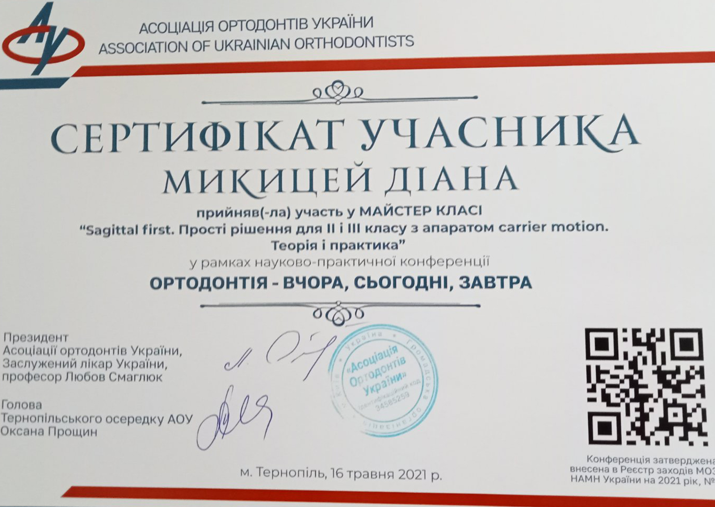- Інтернатура за спеціальністю «Стоматологія» (2018–2020 рр.)